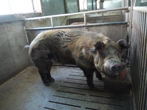 | 美味しさの向上をめざして黒豚(バーグシャー種)を交配しています。 | |