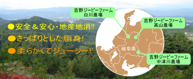 | 岐阜県の自然豊かな飛騨高山と中津川と白川郷で育てられています。 |